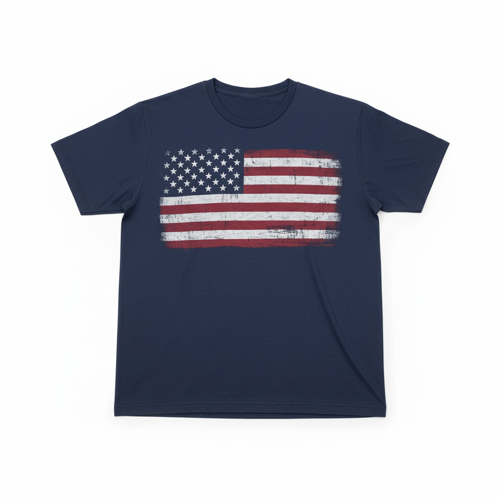 American Flag Printed T-Shirt – Custom Navy Blue Cotton Patriotic Tee