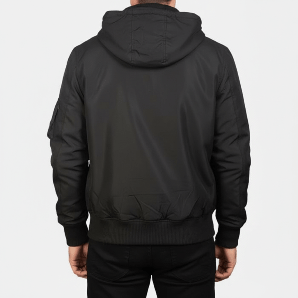 Black Windbreaker Jacket – Hooded Bomber Lightweight Casual Outdoor