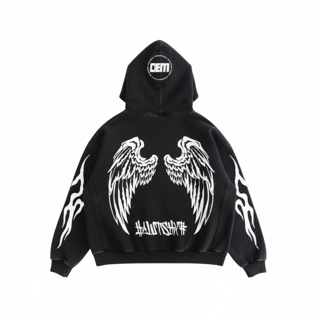 Black Oversized Graphic Hoodie – Screen Printed Casual Sweatshirt