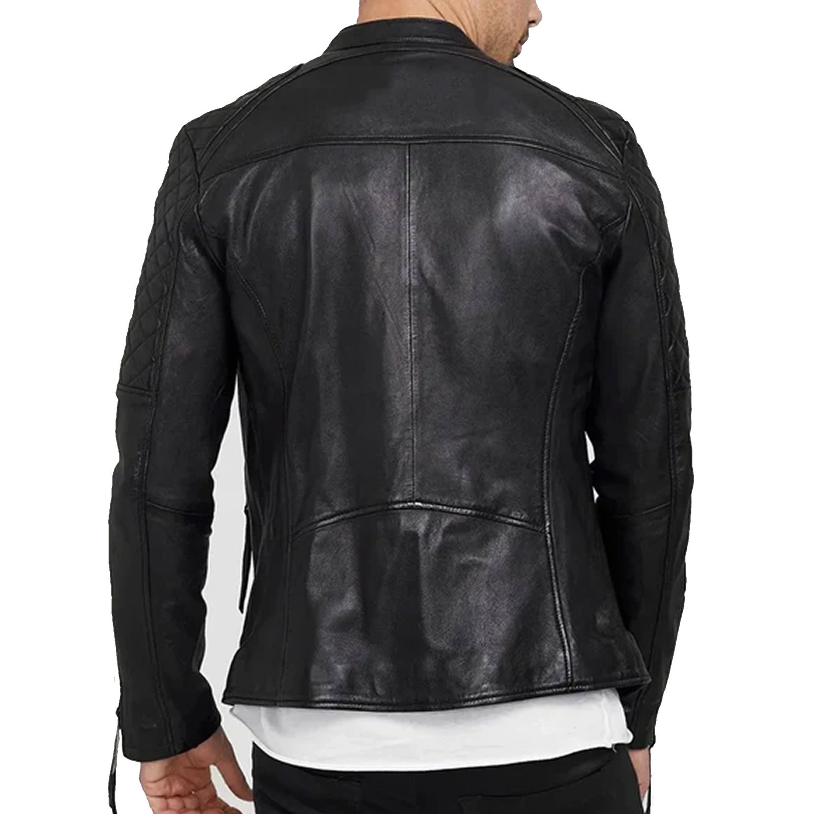 Black Quilted Leather Jacket – Slim Fit Zip Front Premium Outerwear