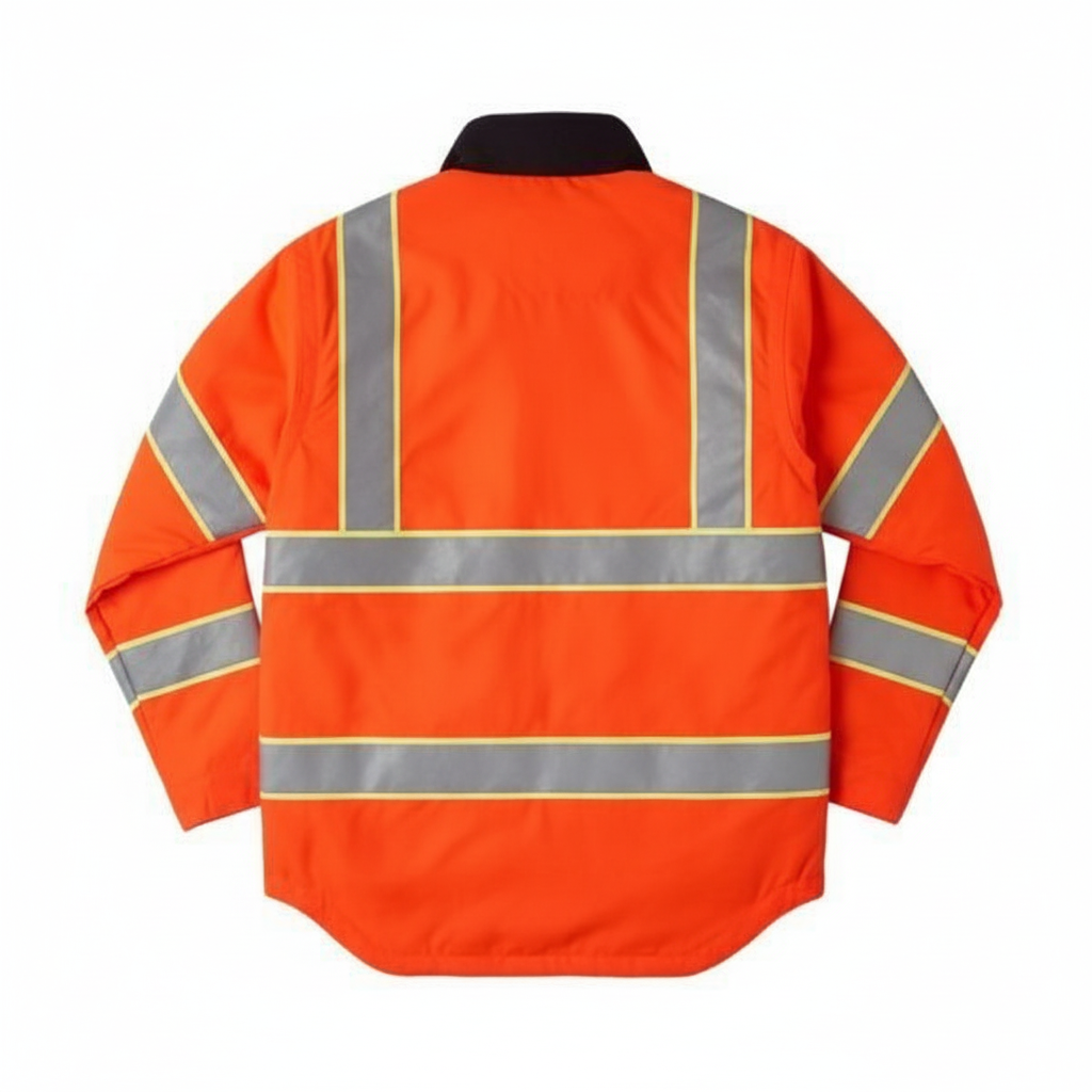 Neon Orange Safety Jacket – Reflective Tape Industrial Workwear