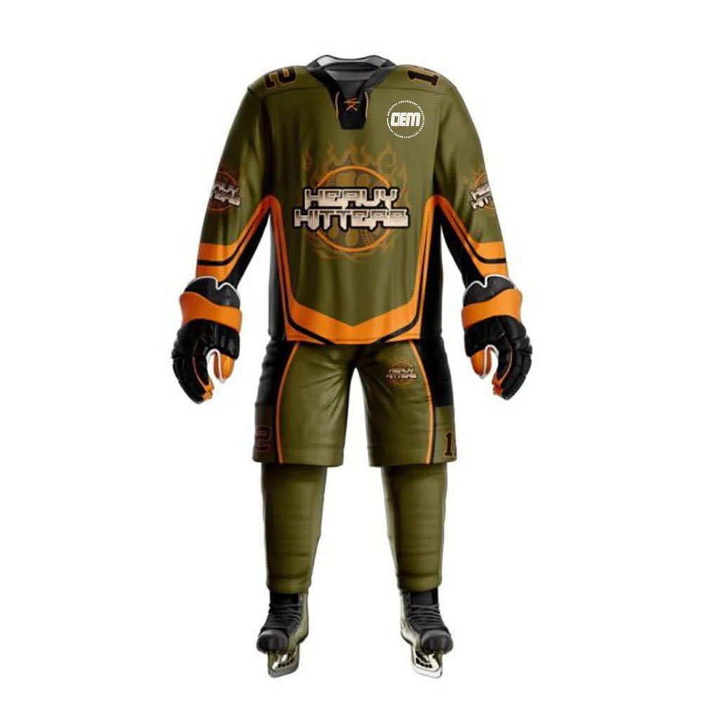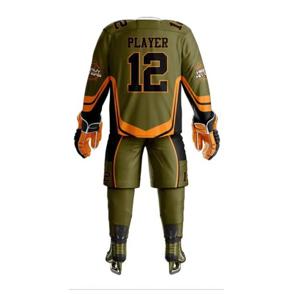 Pro Strike Ice Hockey Uniform Set – Olive Green & Orange Team Kit
