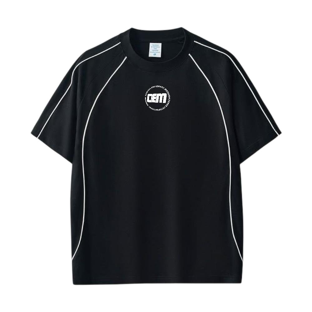 Oversized Black Sports T-Shirt with White Reflector Piping – Street Fit Performance Tee