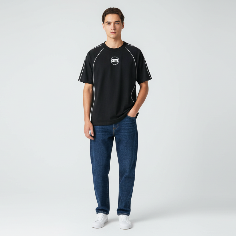 The Oversized Black Sports T-Shirt with White Reflector Piping – Street Fit Performance Tee offers a unique combination of trend relevance and production flexibility. Its oversized structure and reflective detailing make it stand out in modern apparel markets, while its customizable nature allows brands to create differentiated product lines.