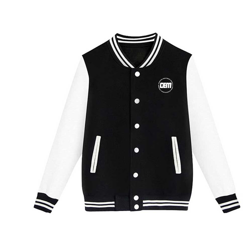 Elevate your collection with OEM International’s Varsity Jacket, a timeless blend of style, comfort, and craftsmanship. Designed with premium wool or fleece body and contrasting leather or PU sleeves, it offers the perfect balance of warmth and streetwear appeal. Ideal for fashion brands, sports teams, or corporate apparel — it delivers premium quality, bold design, and full customization options for your brand.